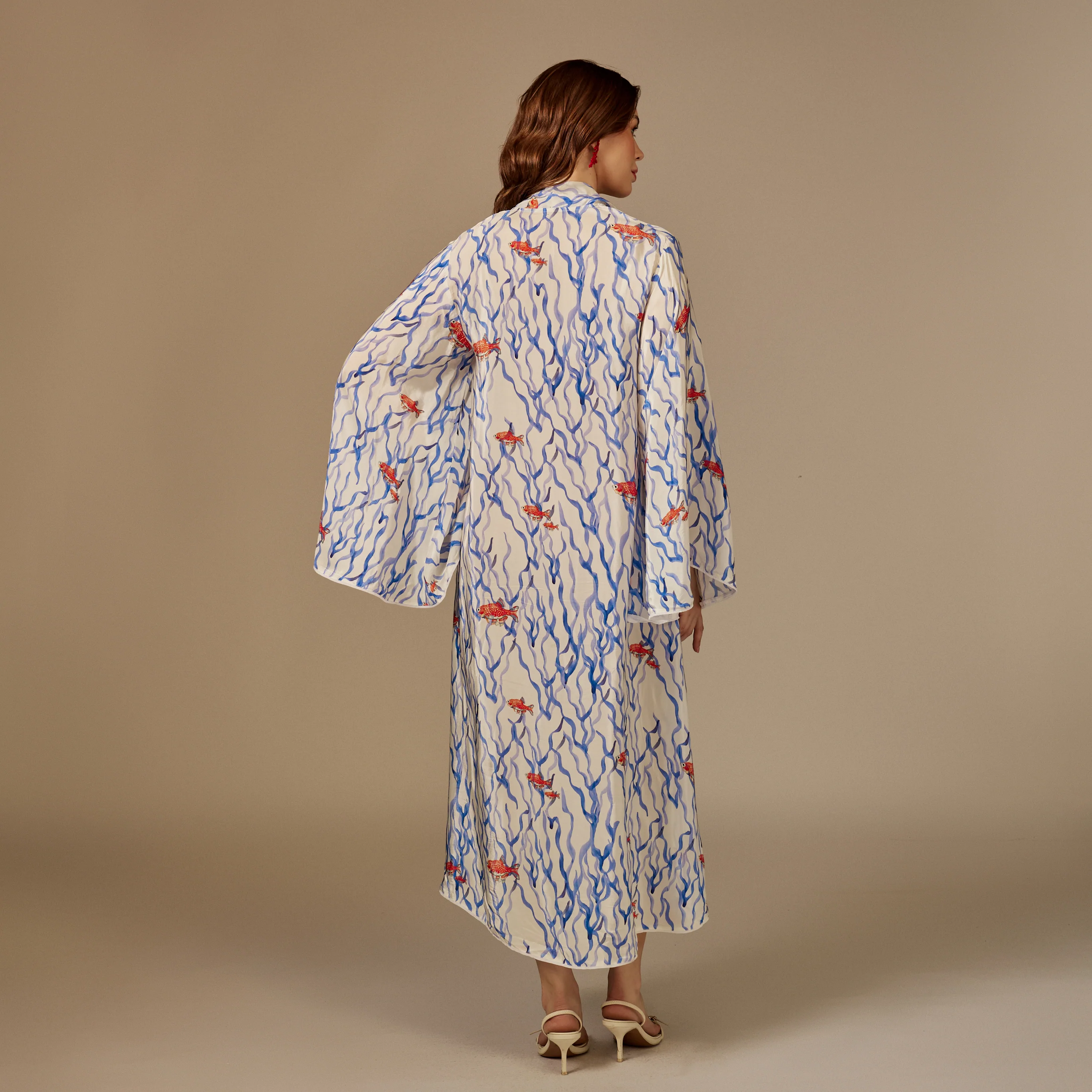 White And blue The Red Sea Breeze: Fish Motif Kaftan