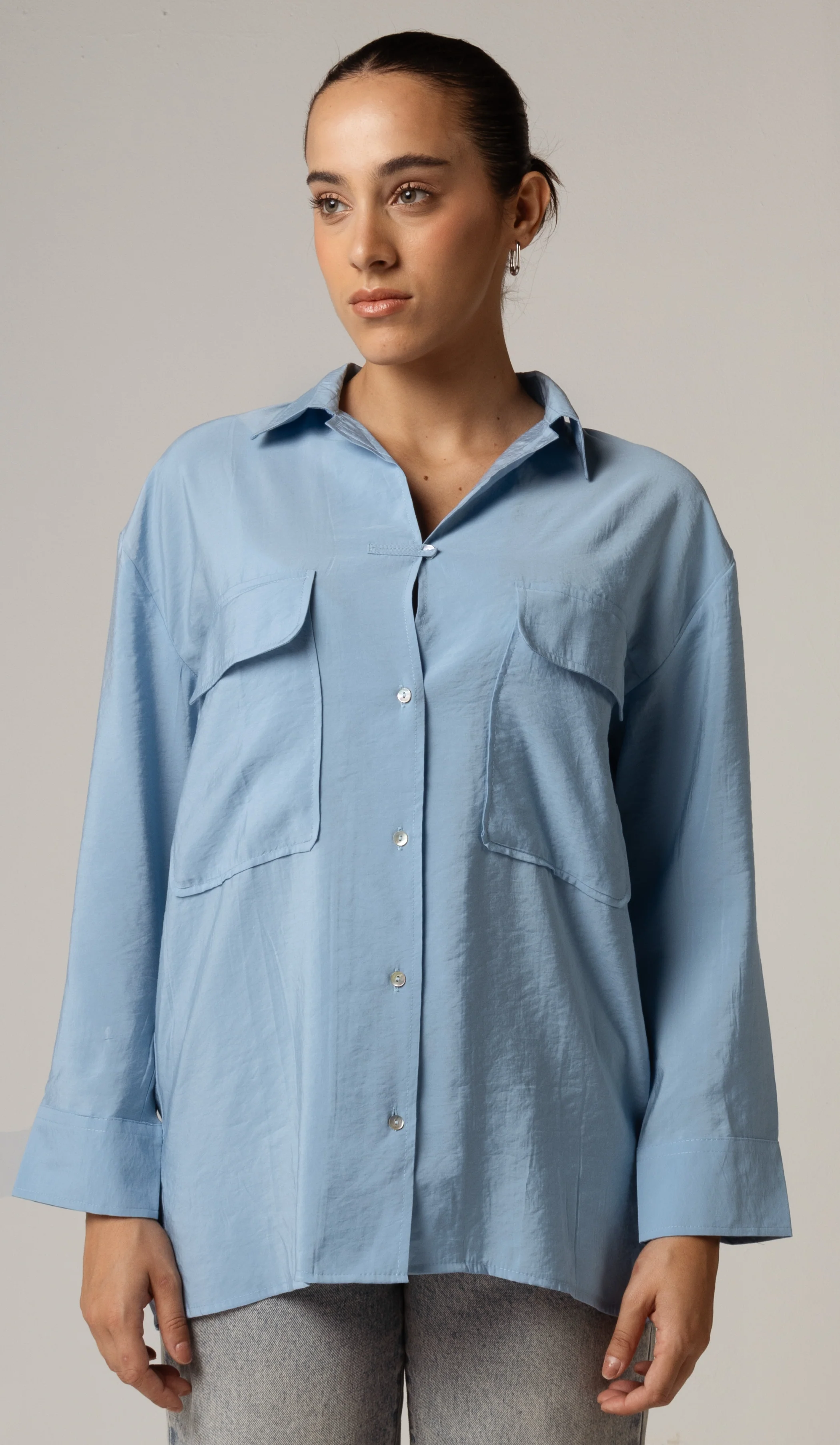 Combine functionality and style with this blue utility pocket shirt, perfect for everyday wear.